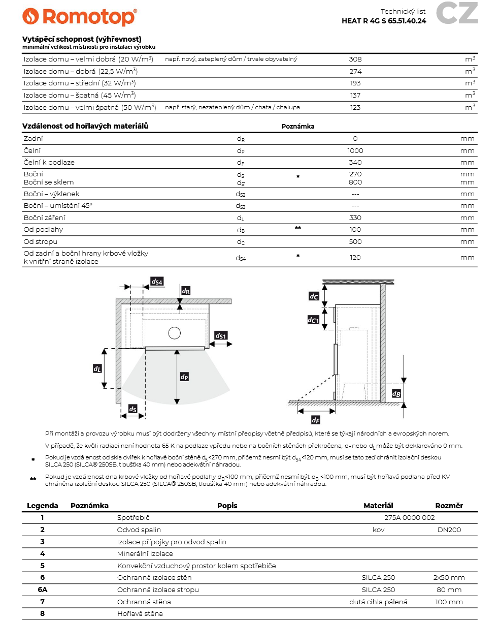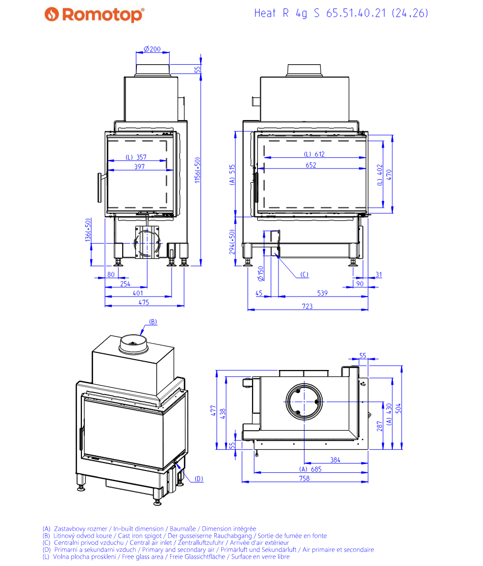 ROMOTOP HEAT R 4G S 65.51.40.24 krbová vložka 5,2-13,5 kW, rohové s otevíráním dvířek do strany a děleným sklem