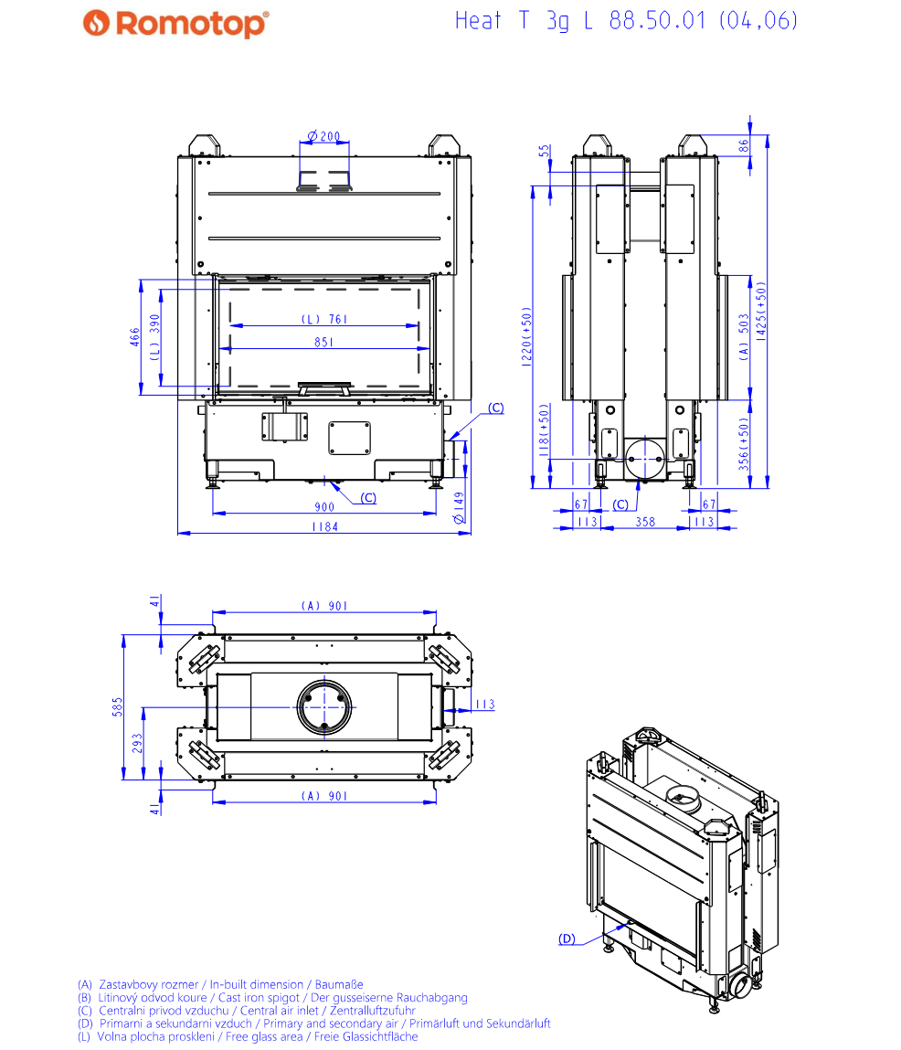 ROMOTOP HEAT T 3G L 88.50.04 krbová vložka 5,8-15,1 kW, průhledové