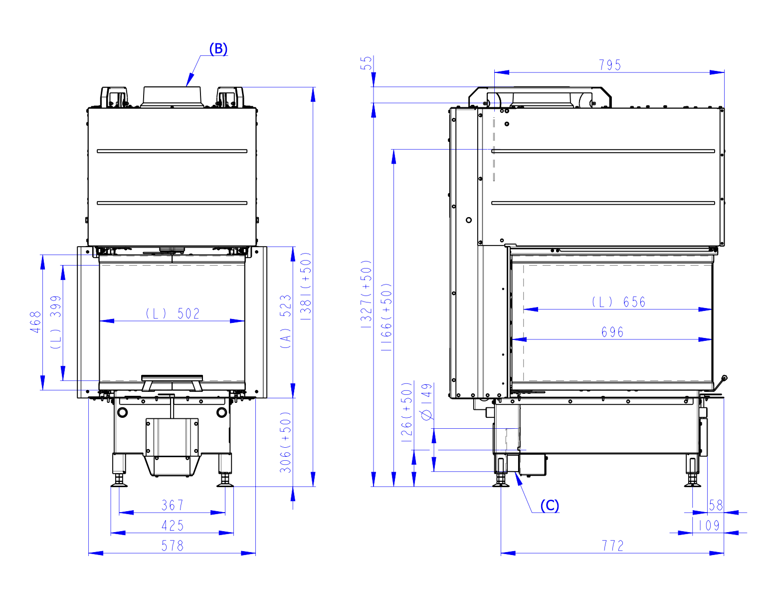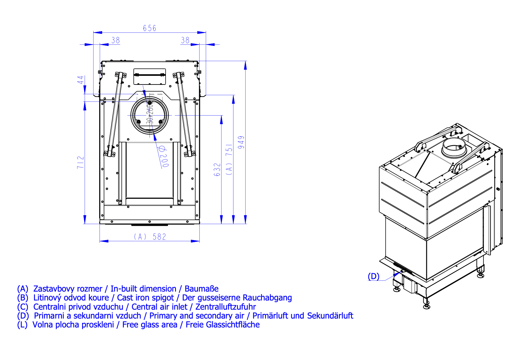 ROMOTOP HEAT U 3G L 50.52.70.24 krbová vložka 5-13 kW, s výsuvnými dvířky