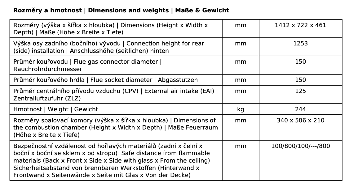 | Průměr kouřovodu: | 150 mm |