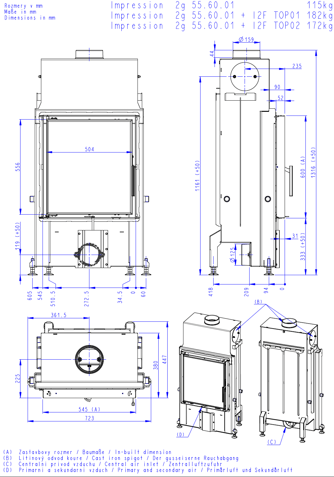 Krbové vložky IMPRESSION mají nadstandardně vysoké sklo pro luxusní požitek z ohně. Díky dvěma sklům ve speciálním tuhém profilu rámu dveří, mohou být vložky použity v akumulační i konvekční obestavbě. Zákazník si může vybrat černou nebo natur barvu spalovací komory s možností změny na roštové topeniště. Inovativní systém vedení spalin DOUBLE SPIN zvyšuje účinnost a ekologičnost krbové vložky. Díky sekundárnímu přívodu vzduchu je sklo dvířek omýváno a tak nedochází k usazování nečistot.