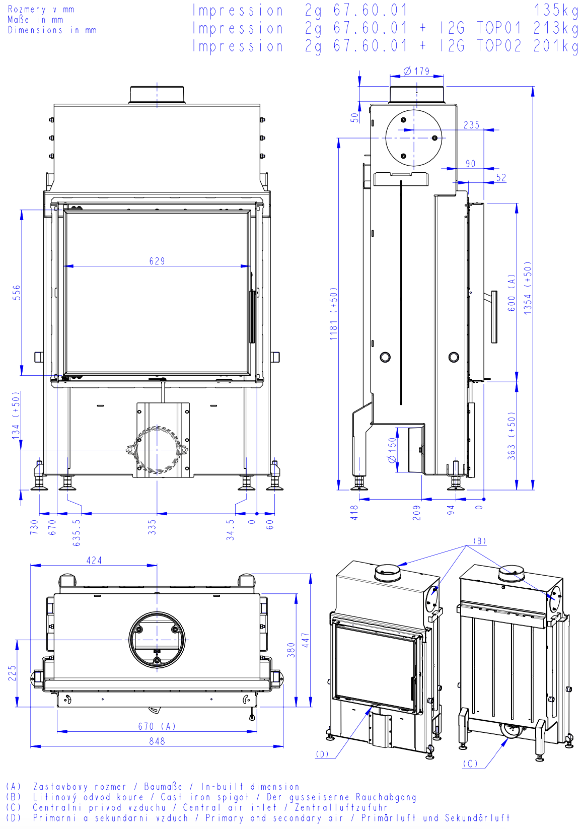 ROMOTOP IMPRESSION 2G 67.60.01 krbová vložka 4,8-12,6 kW, natur spalovací komora