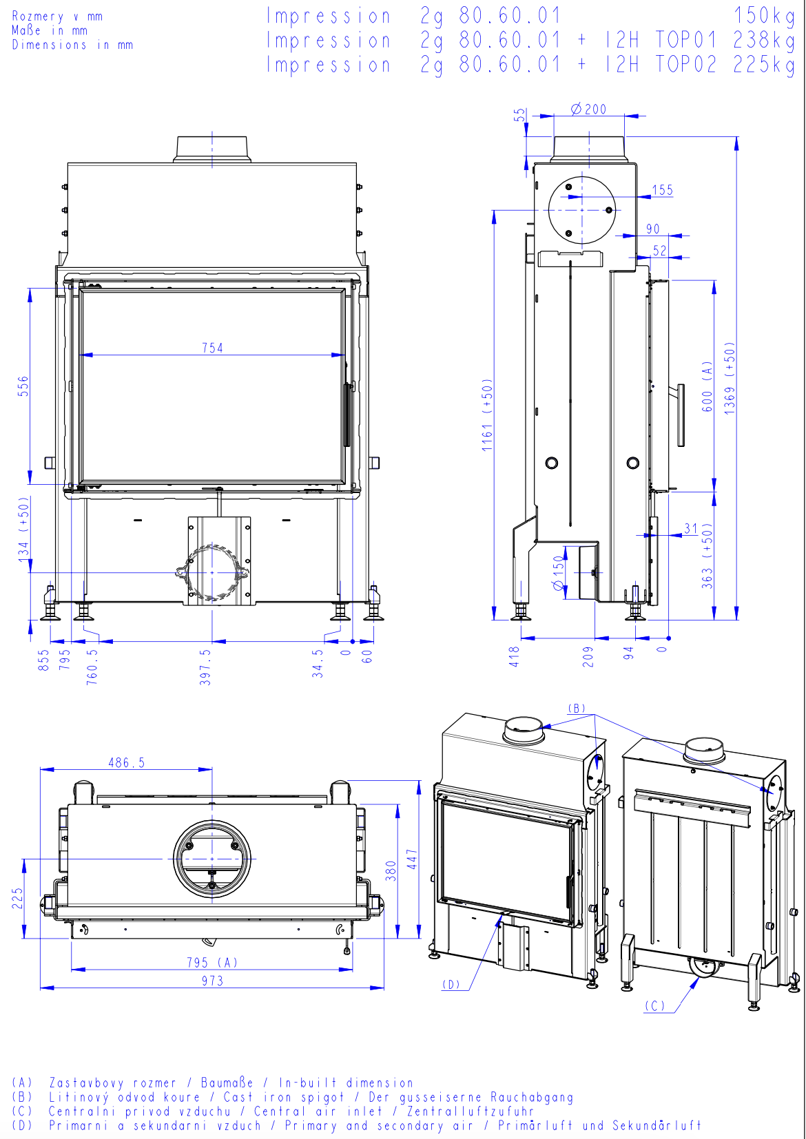 ROMOTOP IMPRESSION 2G 80.60.01 krbová vložka 5,5-14,3 kW, natur spalovací komora