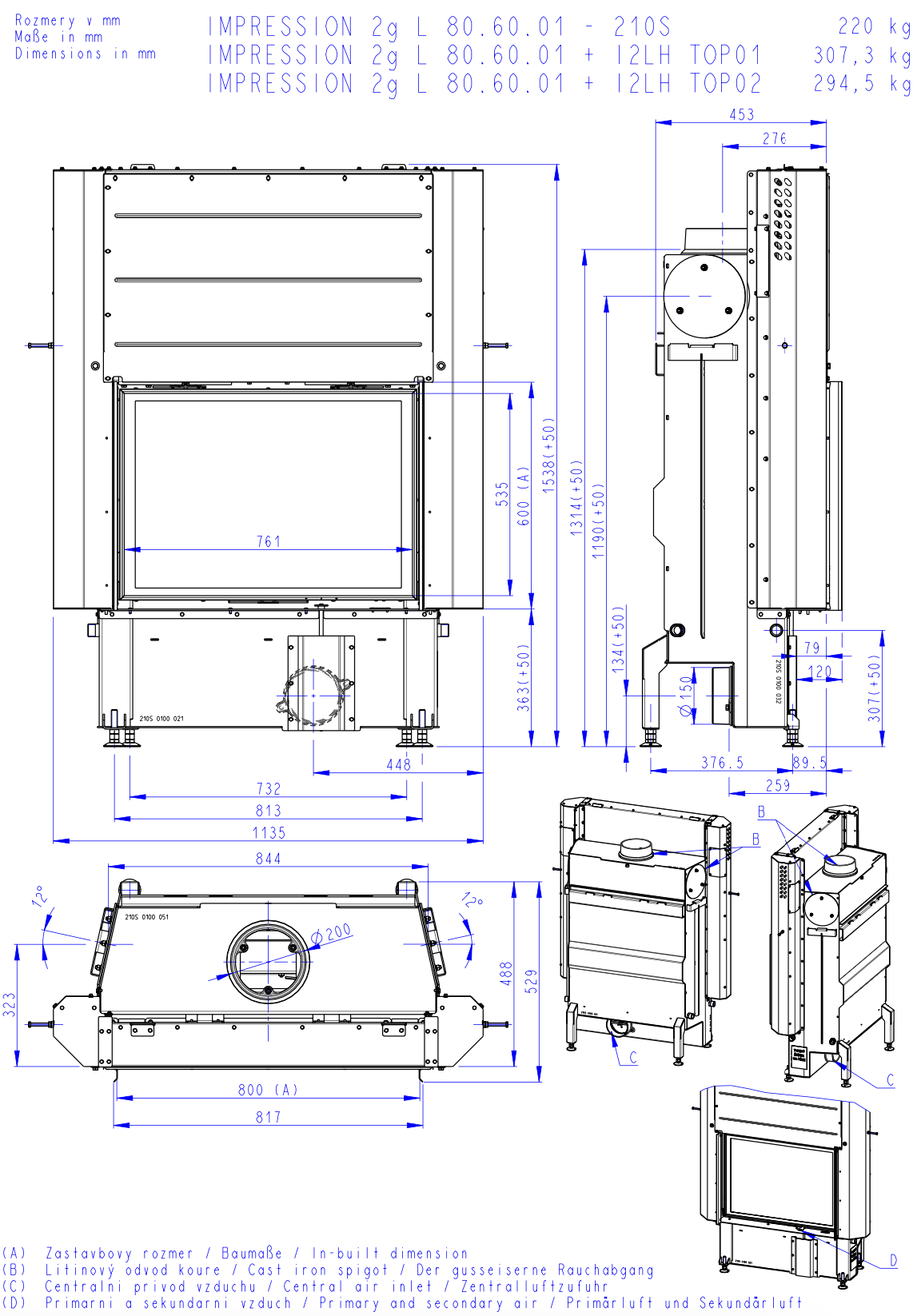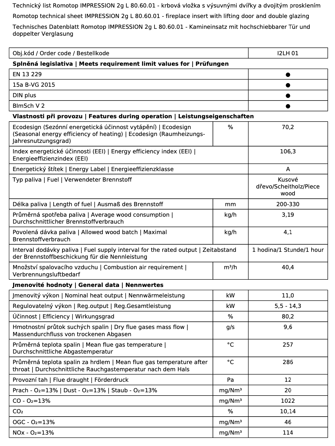 ROMOTOP IMPRESSION 2G L 80.60.01 krbová vložka 5,5-14,3 kW, natur spalovací komora