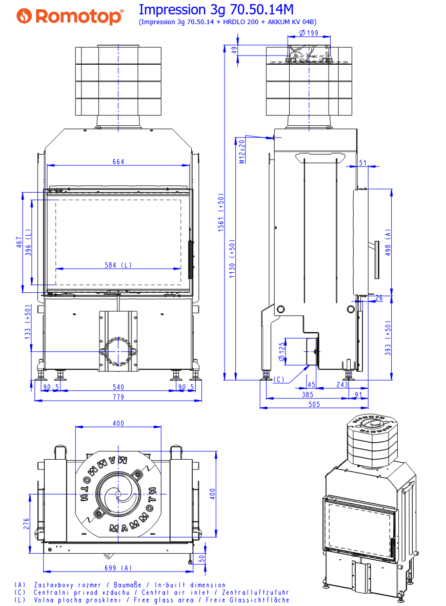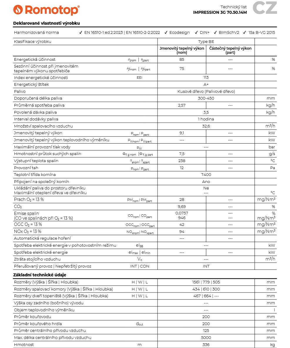 ROMOTOP IMPRESSION 3G 70.50.14M krbová vložka 4,6-11,8 kW, s akumulačními prstenci MAMMOTH