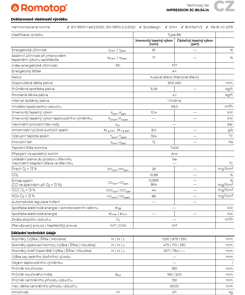 ROMOTOP IMPRESSION 3G 80.54.14 krbová vložka 5,2-13,5 kW, základní modelová řada