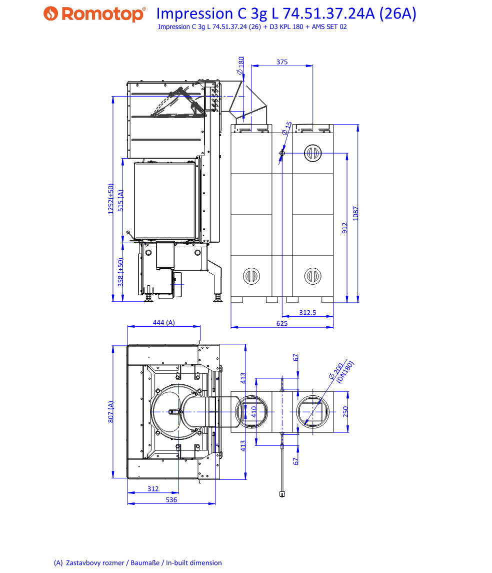 ROMOTOP IMPRESSION C 3G L 74.51.37.24A krbová vložka 6,7-17,3 kW, s akumulačním modulárním systémem AMS