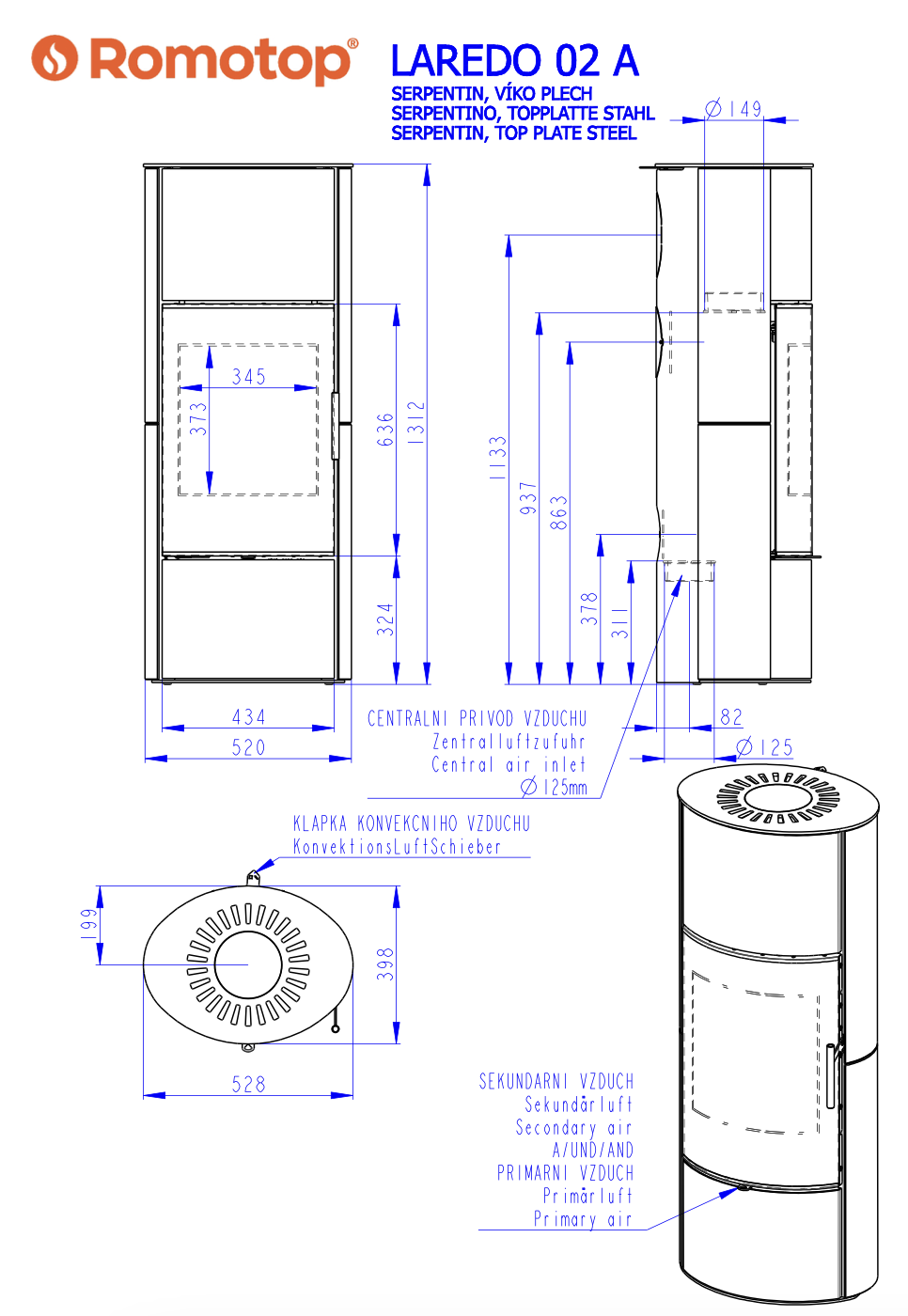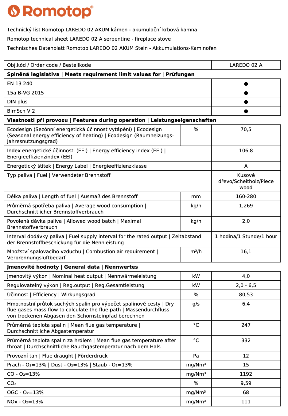 ROMOTOP LAREDO 02 AKUM krbová kamna 6,6 kW kámen