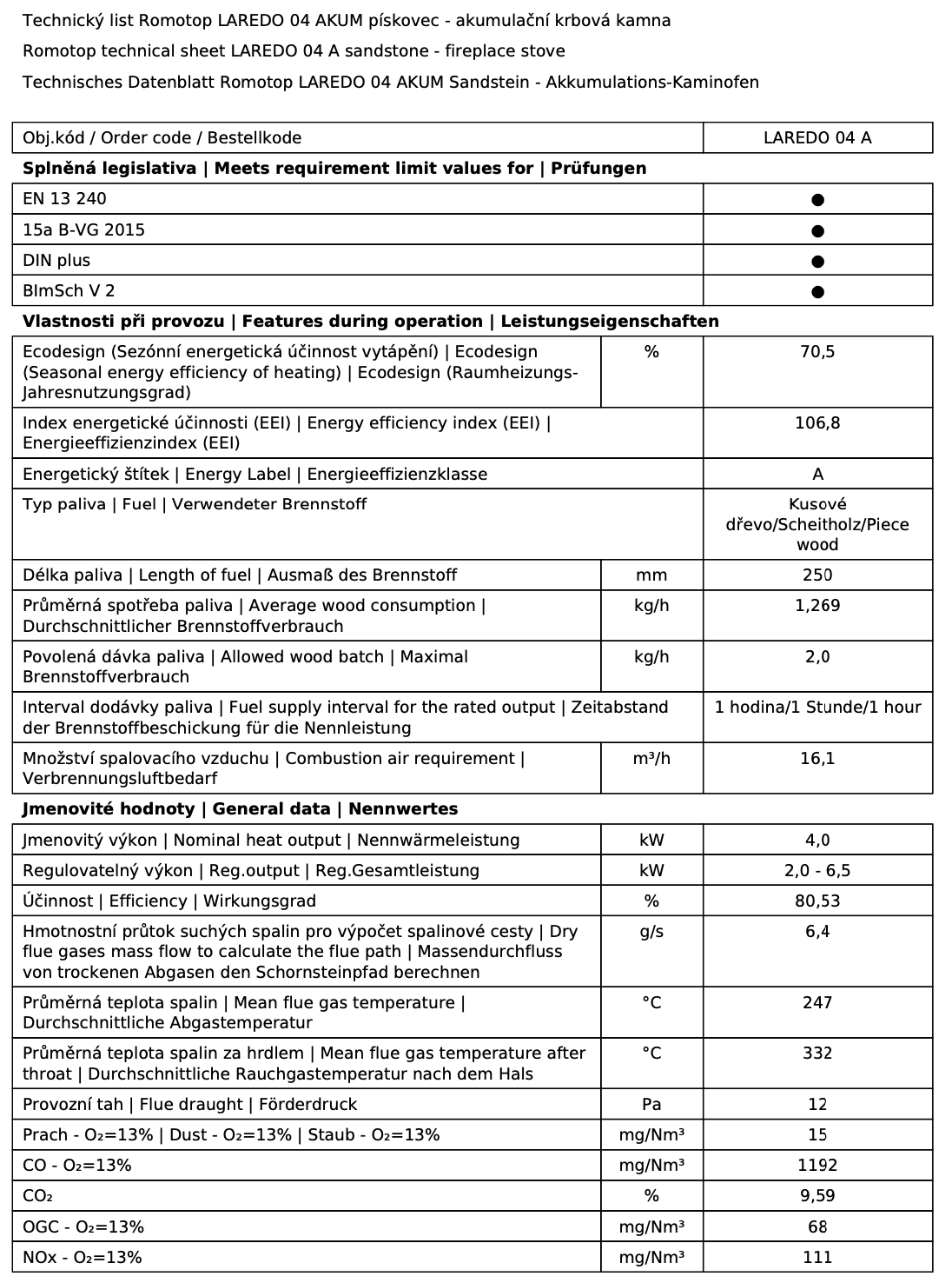 ROMOTOP LAREDO 04 AKUM krbová kamna 2,0-6,5 kW, akumulační, pískovec