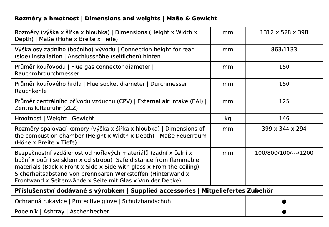 Krbová kamna jsou vhodná pro nízkoenergetické domy. Dvířka kamen mají designově potištěné velkoplošné prosklení. Disponují systémem CPV – centrální přívod externího vzduchu. Ve standardu je možné zapojení horního nebo zadního odvodu spalin. Díky sekundárnímu přívodu vzduchu je sklo dvířek omýváno, a tak nedochází k usazování nečistot. Spalovací komora je vyložena šamotovými tvarovkami. Regulaci primárního a sekundárního přívodu vzduchu lze řídit jediným ovládacím prvkem. Ve spodní části kamen je uzavíratelný dřevník, který umožnuje uskladnění menší zásoby dřeva nebo krbového nářadí. Design umocňují leštěné nerezové ovládací prvky a celoskleněná dvířka kamen.