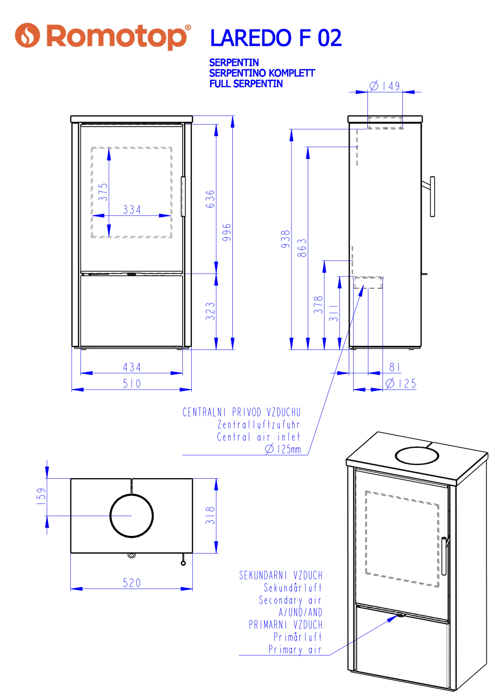 ROMOTOP LAREDO F 02 krbová kamna 2,0-6,5 kW kámen