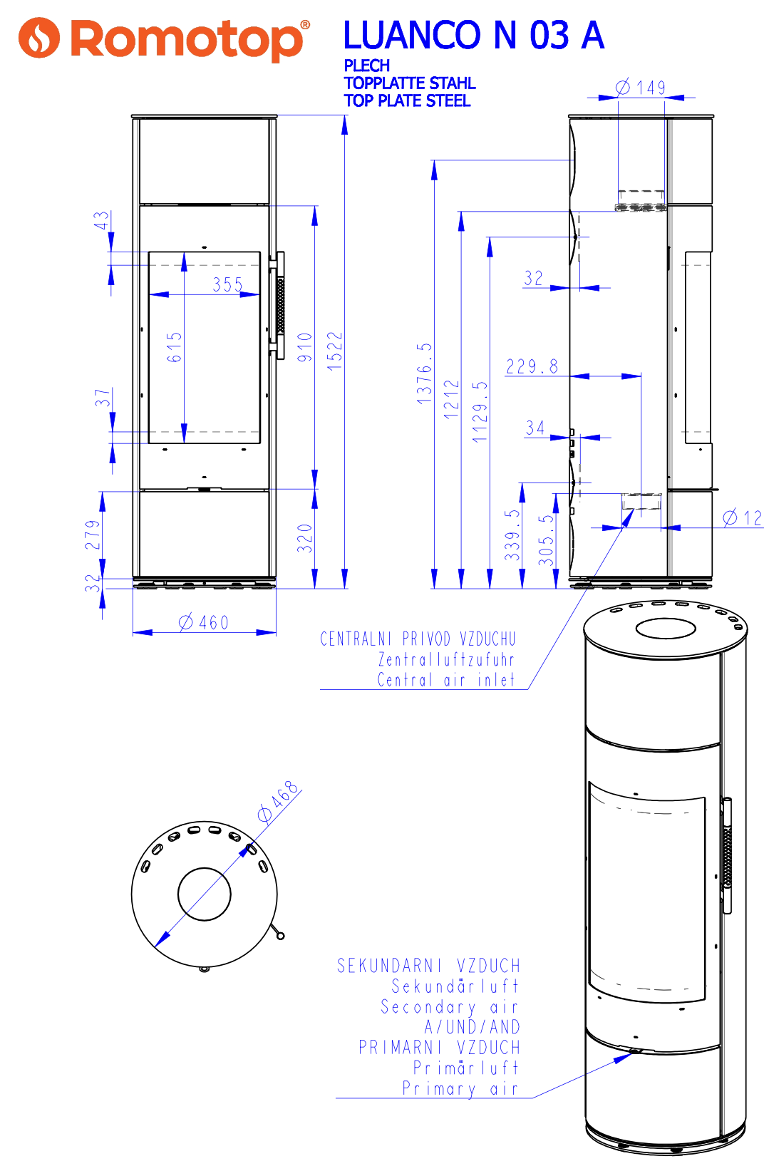 ROMOTOP LUANCO N03 AKUM krbová kamna 2,9-7,4kW, akumulační, černá