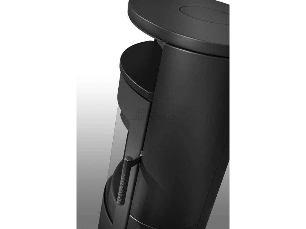 Ve spodní části kamen je uzavíratelný dřevník, který umožnuje uskladnění menší zásoby dřeva nebo krbového nářadí.