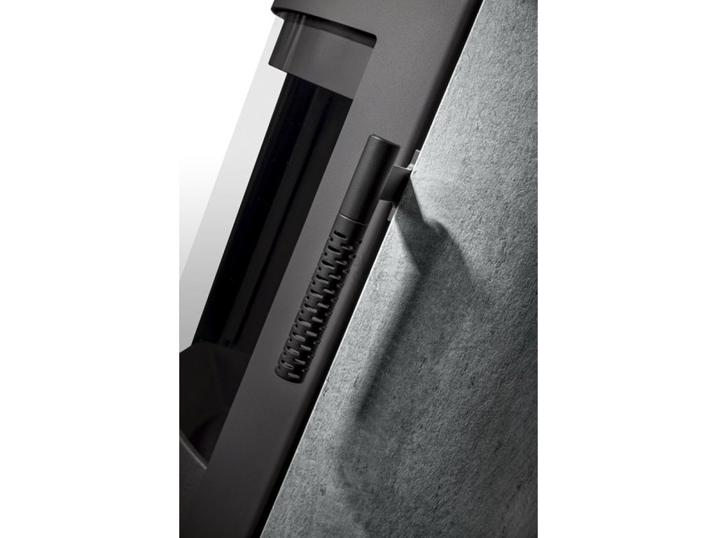 Oválný tvar krbových kamen LUGO N působí v interiéru útulným dojmem. Příjemnými detaily jsou například odkládací parapet nad ohništěm nebo klika dvířek, která svým technickým řešením i designem dává krbovým kamnům elegantní vzhled.