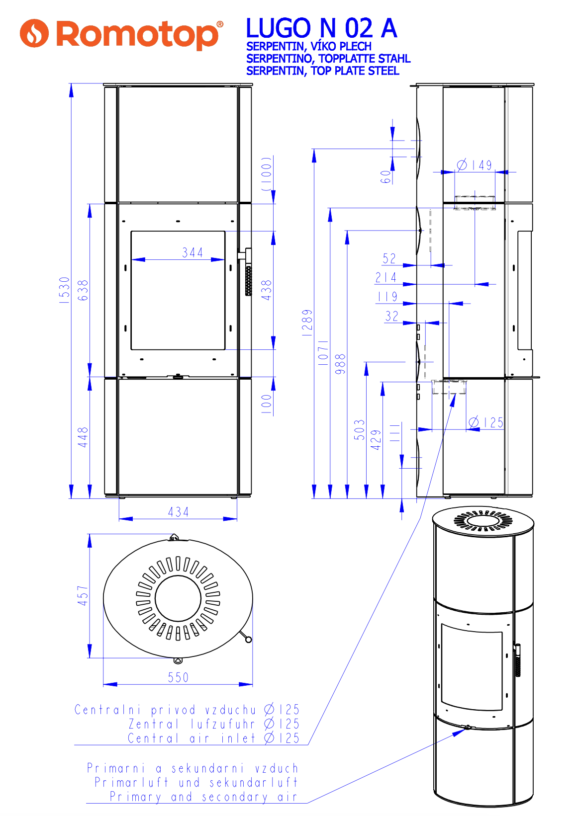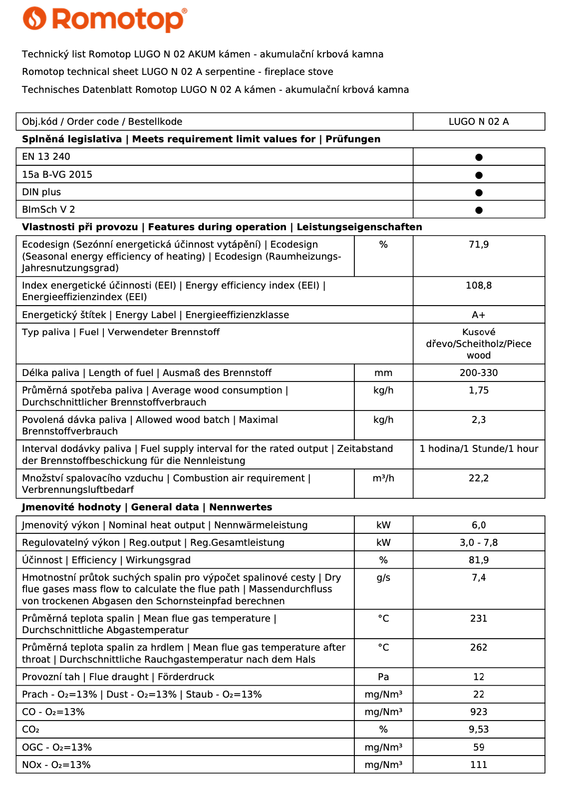 ROMOTOP LUGO N02 AKUM krbová kamna 3-7,8kW, akumulační, kámen