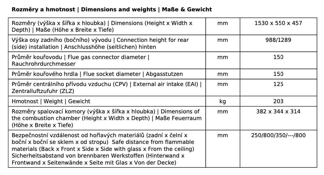 | Výška osy zadního kouřovodu: | 988/1289 mm |
