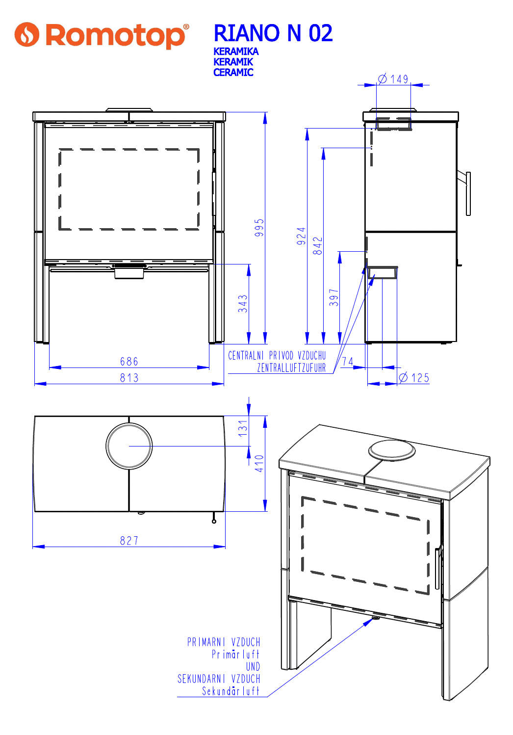 ROMOTOP RIANO N02 krbová kamna 4,5-11,7 kW, černá/cherry