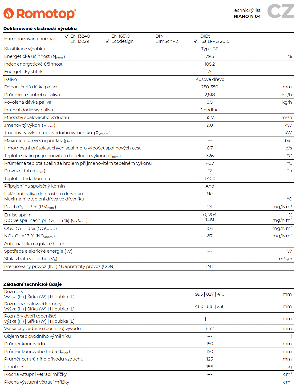 ROMOTOP RIANO N04 krbová kamna 4,5-11,7 kW, sloková kost