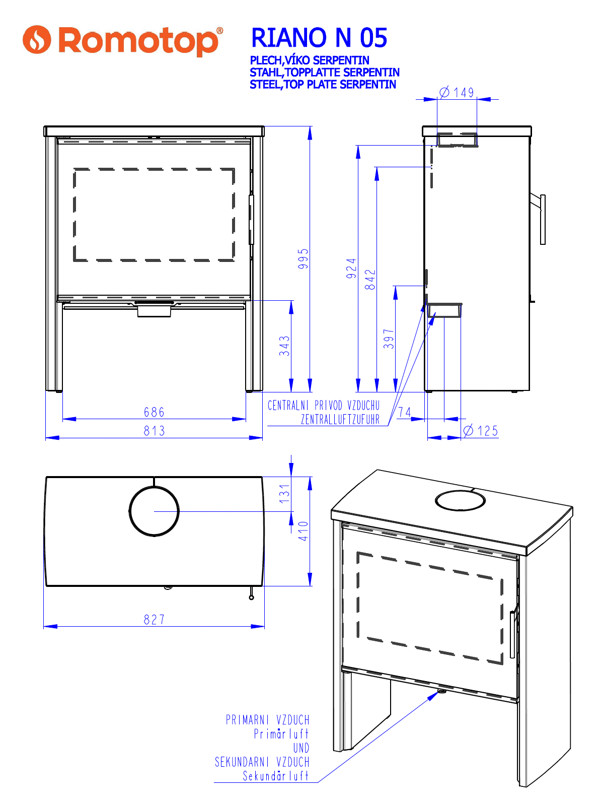 Krbová kamna perfektně padnou do moderních interiérů. Dvířka kamen mají designově potištěné velkoplošné prosklení. Disponují systémem CPV – centrální přívod externího vzduchu. Ve standardu je možné zapojení horního nebo zadního odvodu spalin. Díky sekundárnímu přívodu vzduchu je sklo dvířek omýváno, a tak nedochází k usazování nečistot.