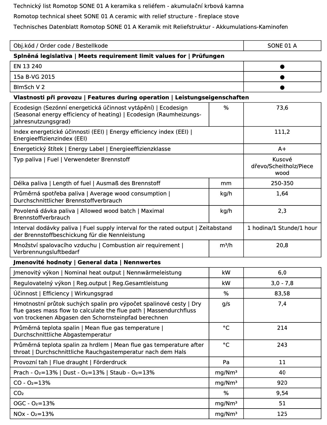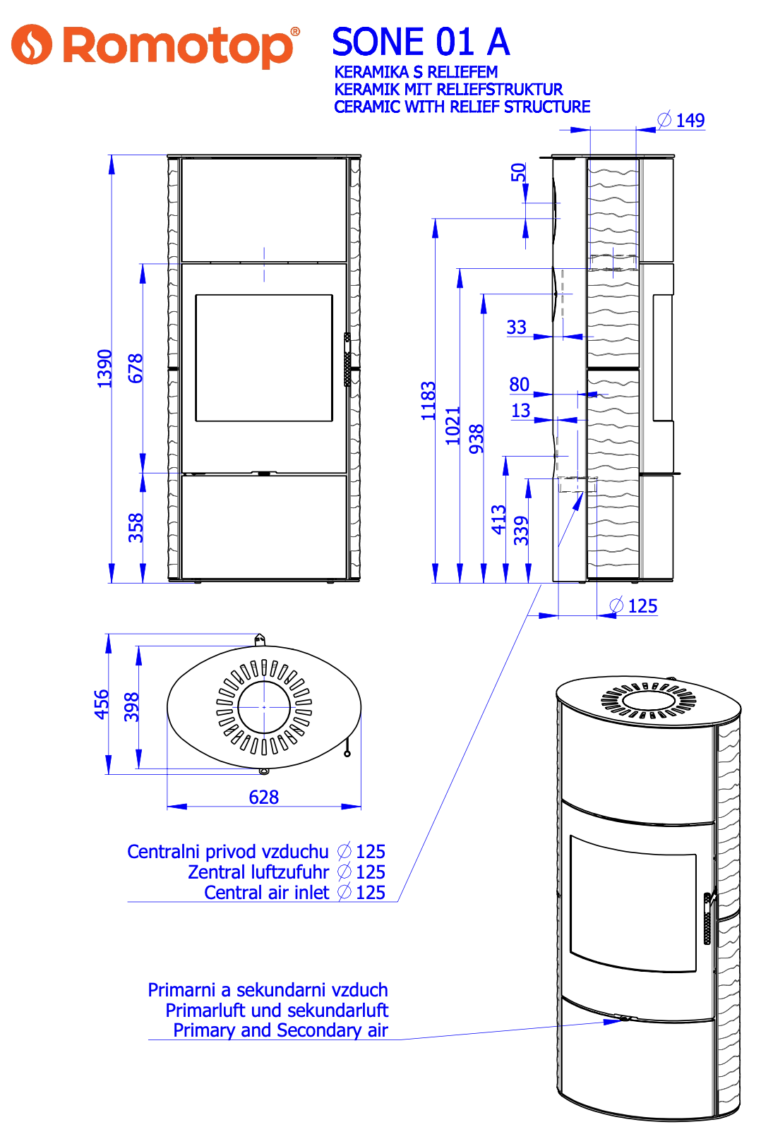 SONE A jsou vyšší než základní model, a to za účelem přidání akumulačních prvků do prostoru nad spalovací komorou. Tepelná energie se tak efektivně ukládá a následně uvolňuje do interiéru.