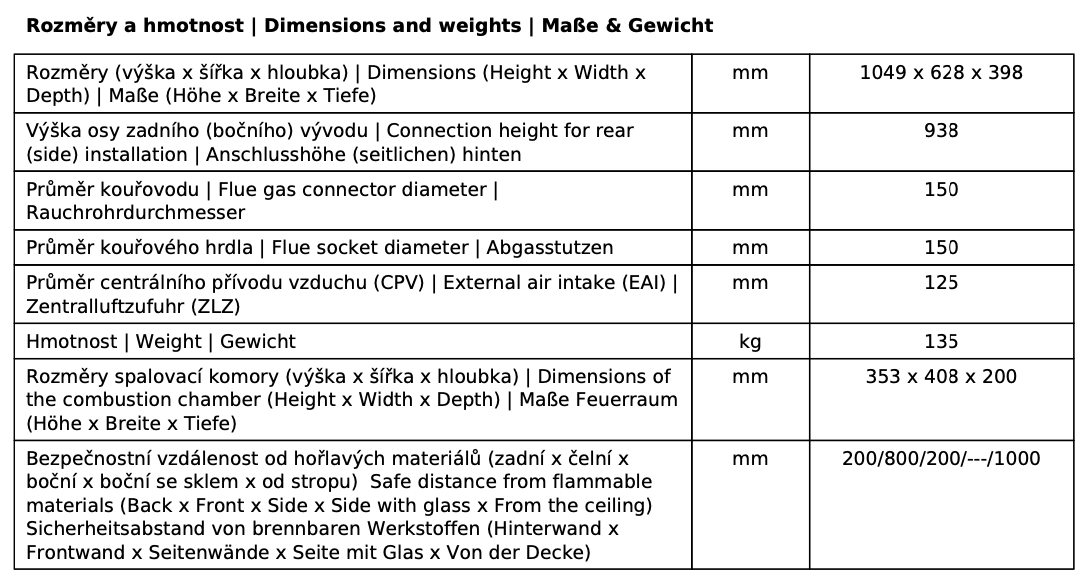 | Průměr kouřovodu: | 150 mm |