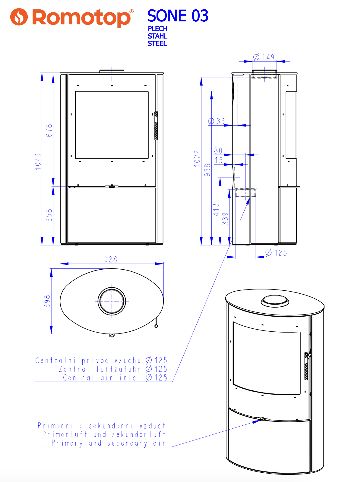 ROMOTOP SONE 03 krbová kamna, plech