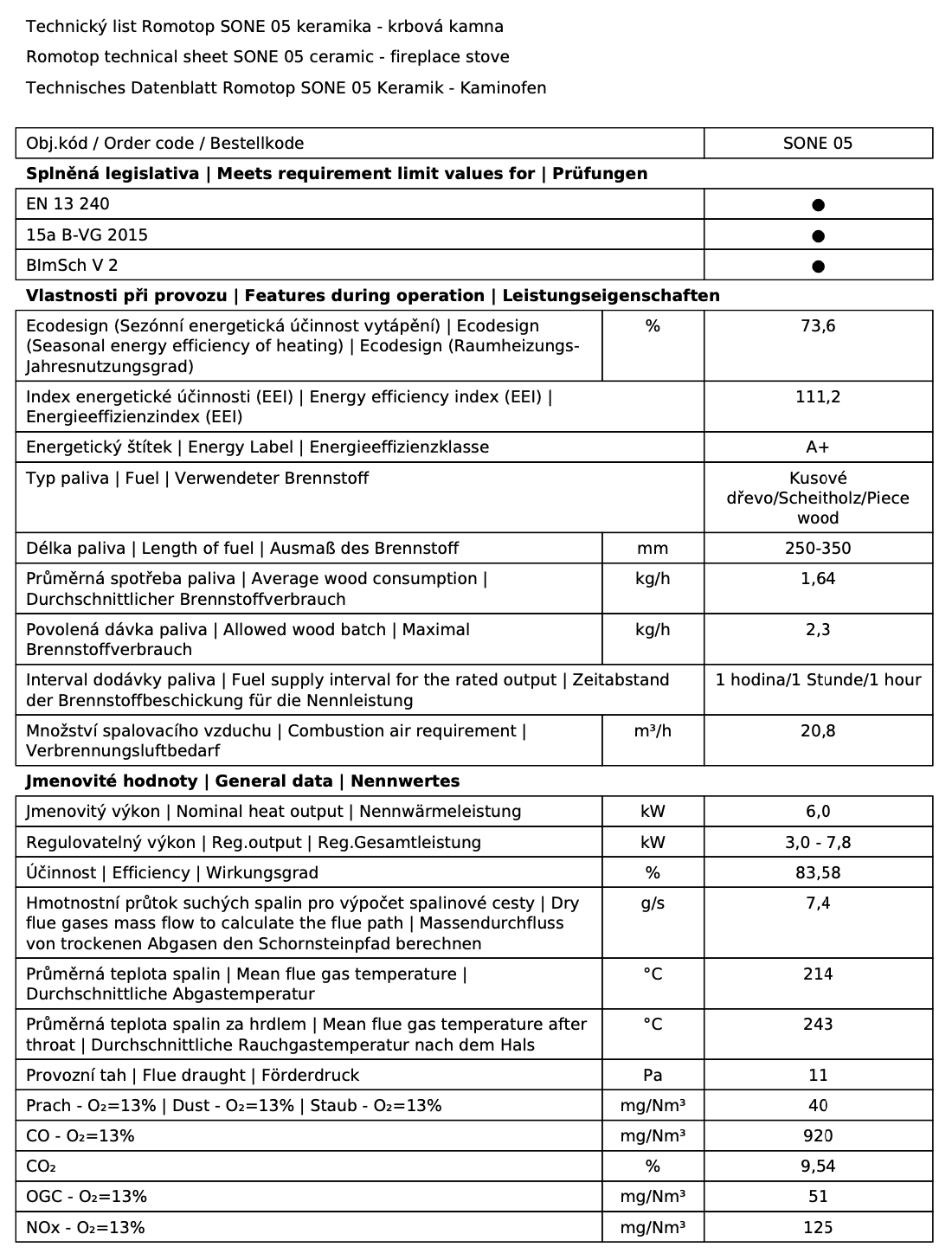 Krbová kamna jsou vhodná pro nízkoenergetické domy. Disponují systémem CPV – centrální přívod externího vzduchu. Konstrukce kamen umožňuje zvolit ze dvou způsobů odvodu spalin, a to horního nebo zadního. Sklo dvířek z vnitřní strany omývá proudící sekundární vzduch a díky tomu nedochází k usazování nečistot. Spalovací komora je vyložena kvalitními šamotovými tvarovkami. Regulaci primárního a sekundárního přívodu vzduchu lze řídit jediným ovládacím prvkem.