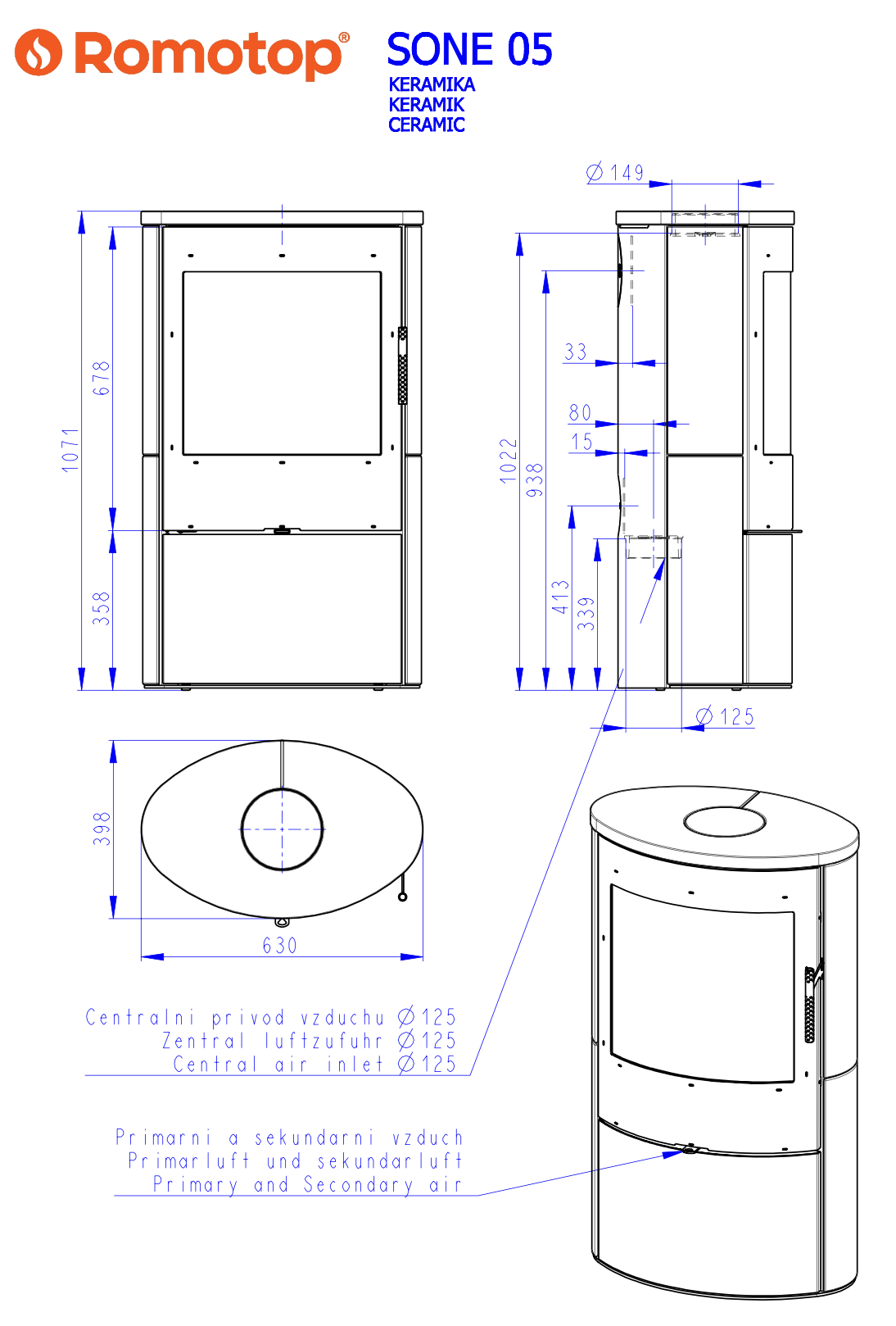 ROMOTOP SONE 05 3,0-7,8 kW krbová kamna, bílá matná