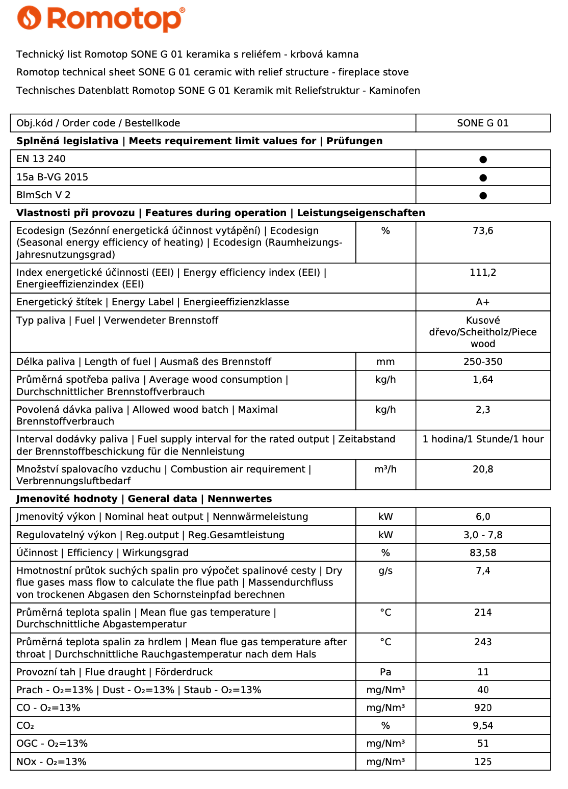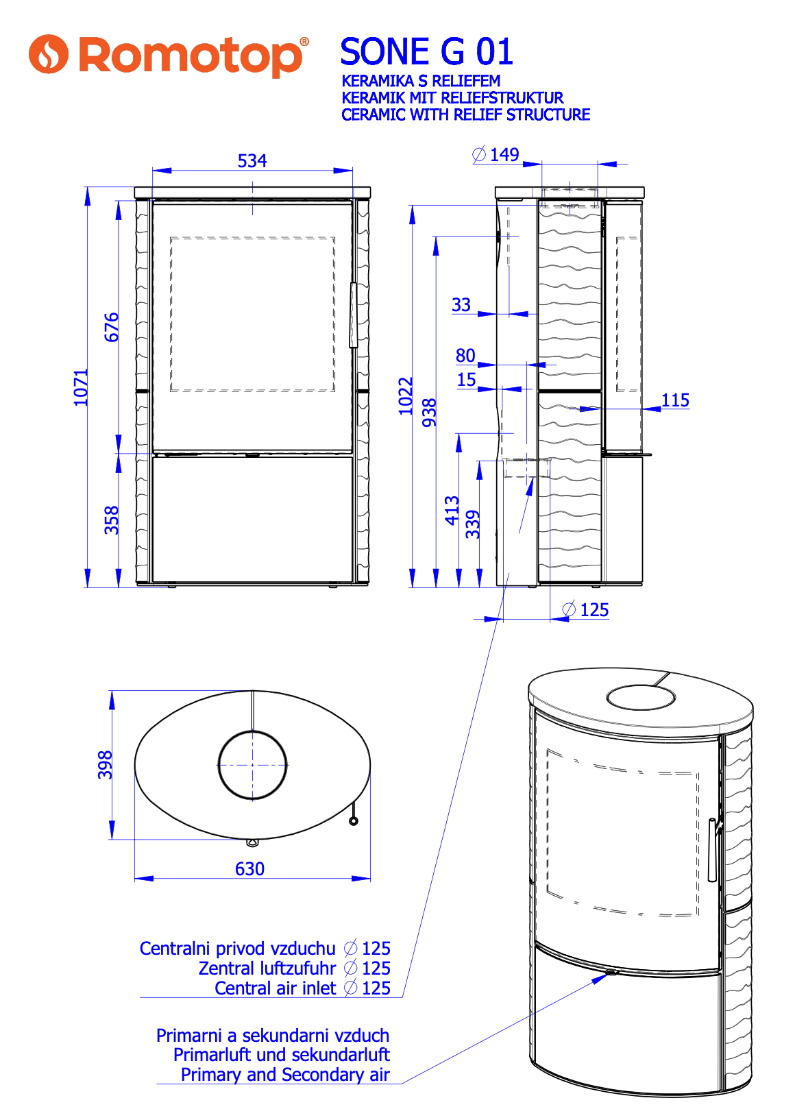 ROMOTOP SONE G 01 krbová kamna 3-7,8kW, keramika s reliéfem, perlová
