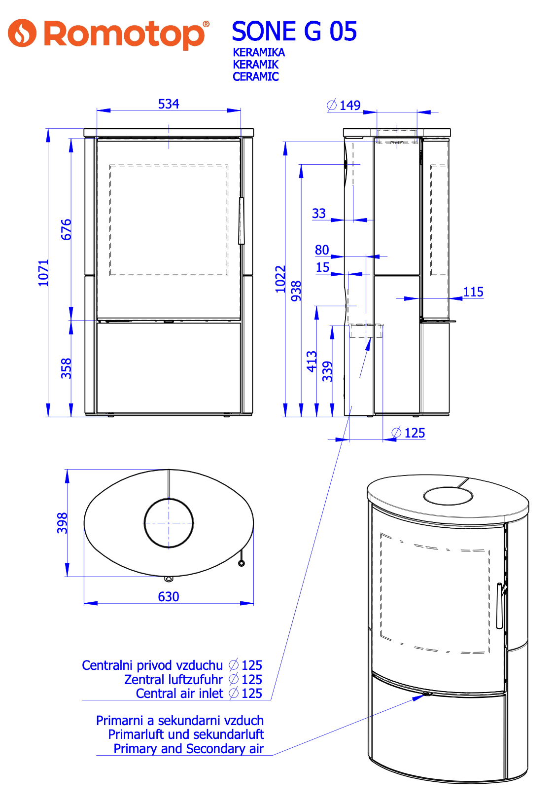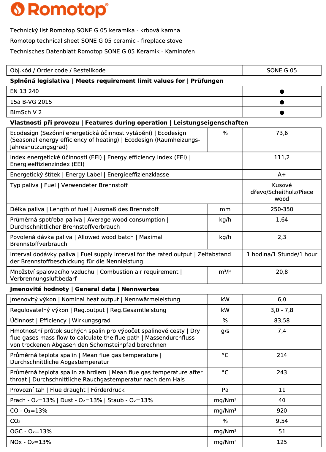 ROMOTOP SONE G 05 krbová kamna 3-7,8kW, silver