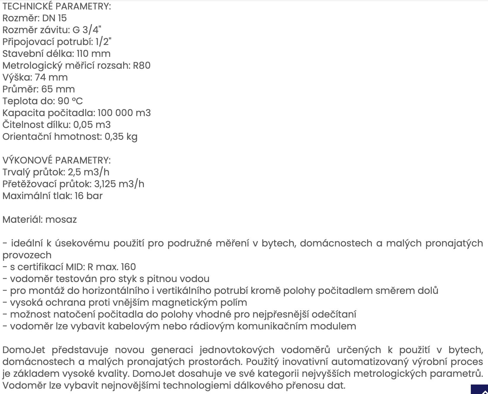 | Průtok vodoměru Q (m3/h): | 2.5 |