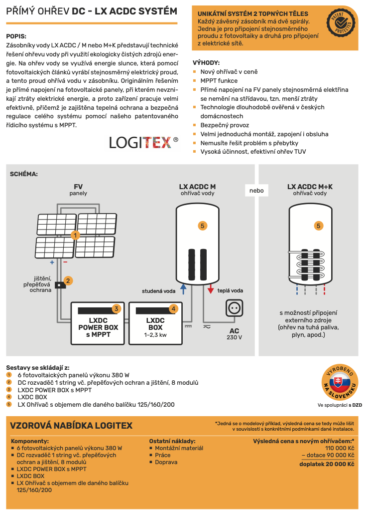 Set pro FVE Dražice - Sestava NZÚ light LXDC 2,28 kWp s ohřívačem LX ACDC 160 M+K