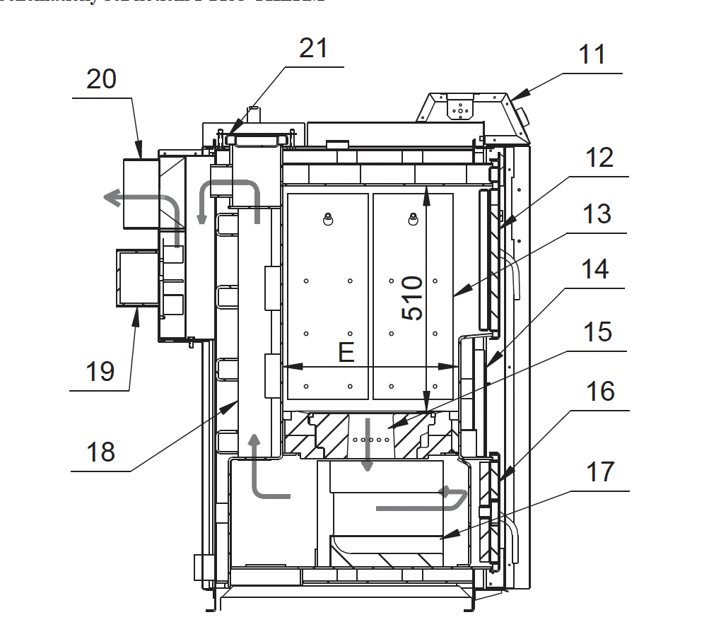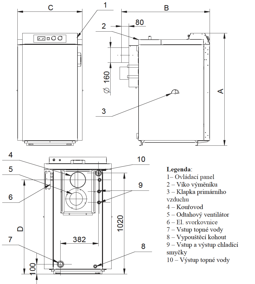 - Silný odtahový ventilátor zajišťující efektivní spalování, bezprašný provoz, kotelnu bez kouře