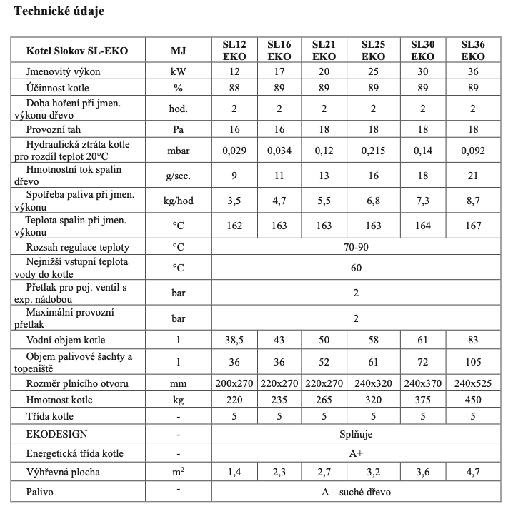 Nová řada odhořívacích kotlů Slokov SL-EKO na kusové dříví splňuje emisní třídu 5 a EKODESIGN. Kotle SL-EKO lze provozovat bez přívodu elektrické energie a na samotížné systémy. Kotle SL-EKO mají nový patentový systém spalovací komory, díky které zaručují tyto kotle ekologické spalování s vysokou účinností.