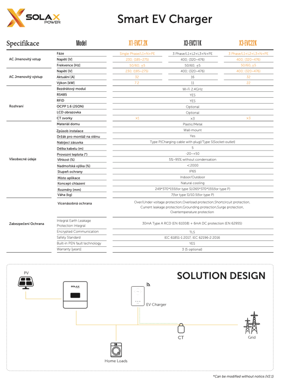 SOLAX X3-EVC11K (PXH) nabíjecí stanice 11kW, třífázová, kabel se zástrčkou, domácí verze, pro elektromobily