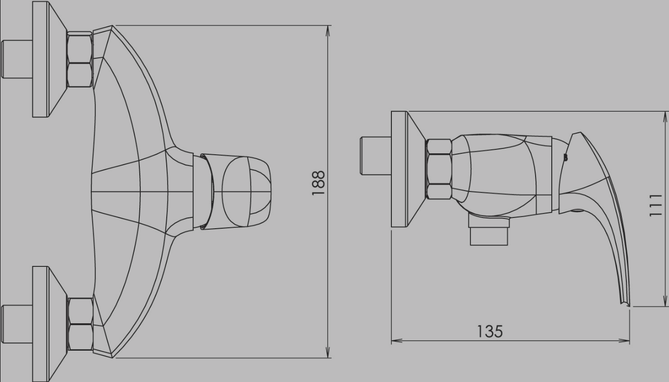 Sprchová nástěnná baterie se spodním vývodem vody s roztečí 150 mm.