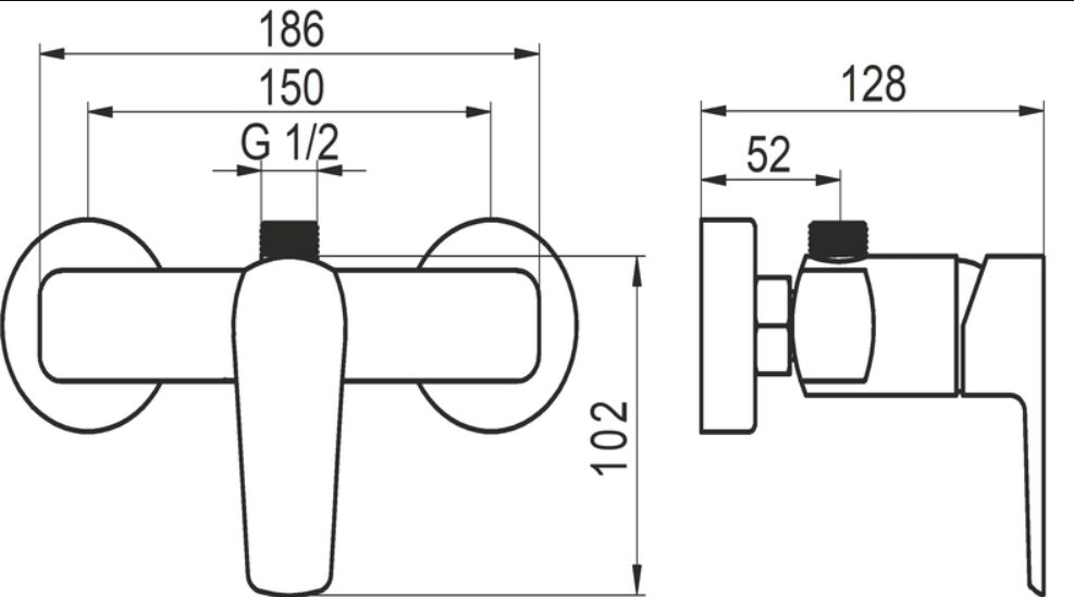 Sprchová nástěnná baterie s horním vývodem vody s roztečí 150 mm.