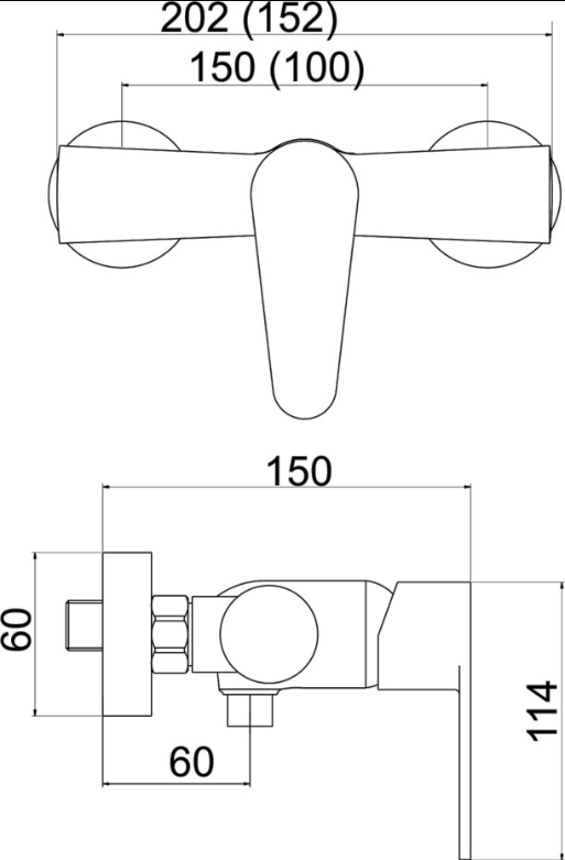 Sprchová nástěnná baterie s roztečí 150 mm.