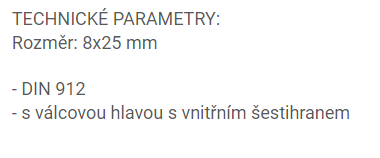 Šroub A2 8x25mm, DIN912, válcová hlava s vnitřním šestihranem