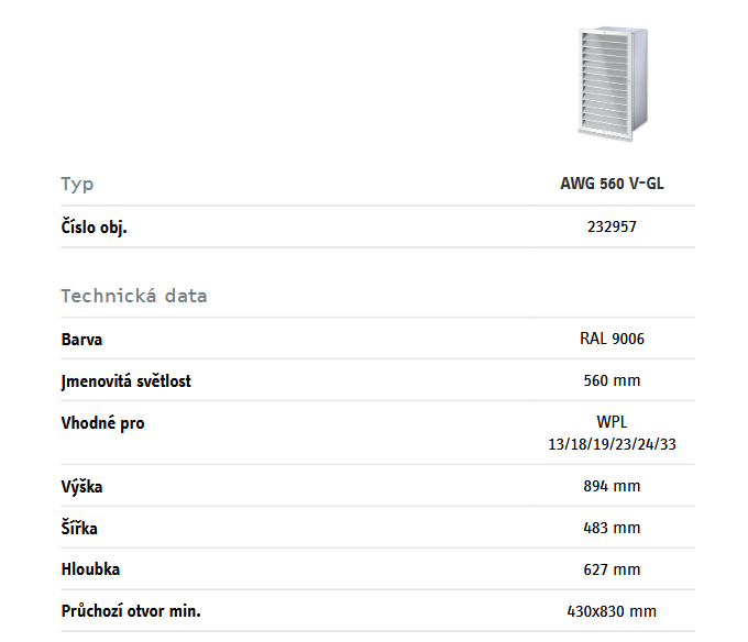 - Dobrá ochrana před povětrnostními vlivy a nízké tlakové ztráty díky optimalizované geometrii lamel