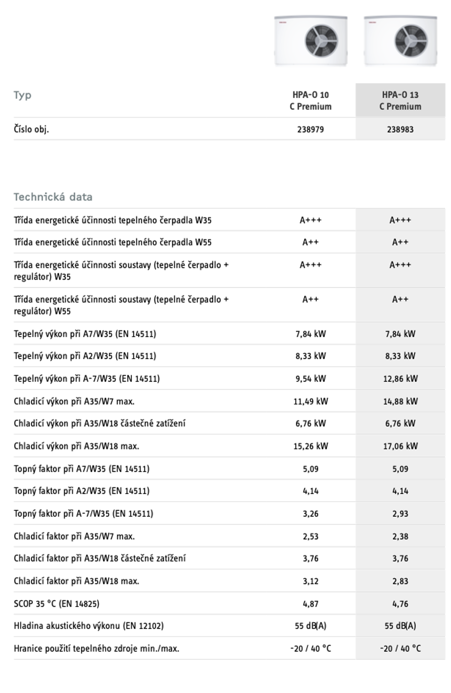 - Topný výkon pro A-7/W35 (EN 14511): 12,86 kW
