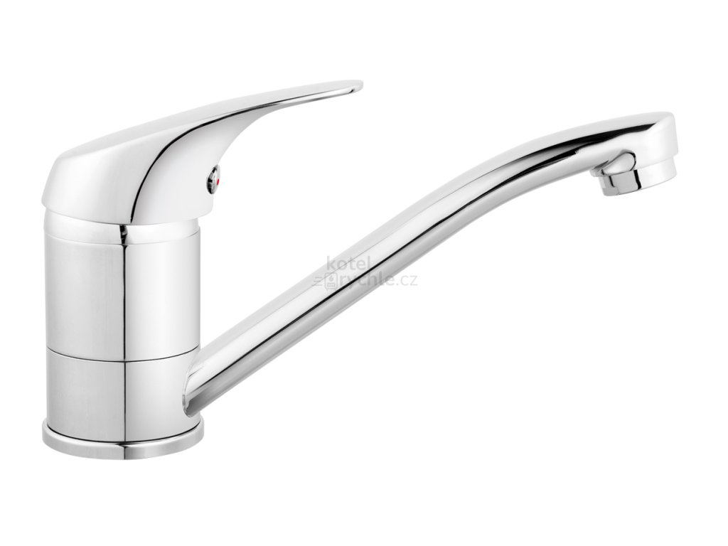 Stojánková dřezová baterie s otočným ramenem a délkou 162 mm.