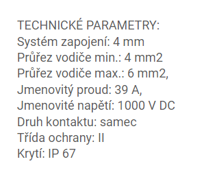 STRAUBLI MC4 fotovoltaický konektor 4-6mm2, 39V
