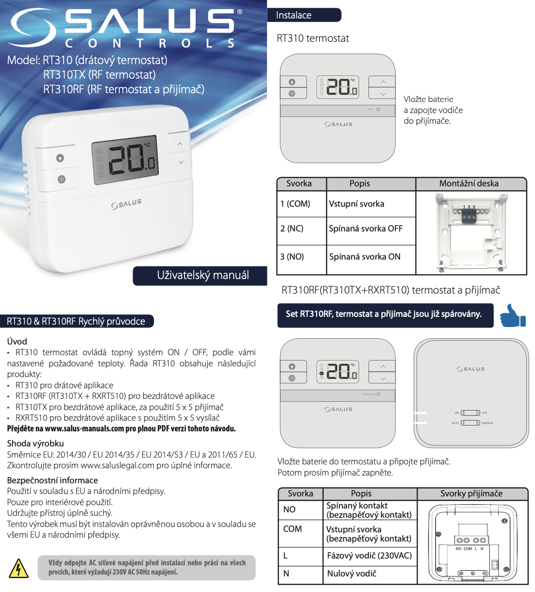 THERMOCONTROL SALUS RT310 termostat 5-35°C, 0-230V, digitální, manuální
