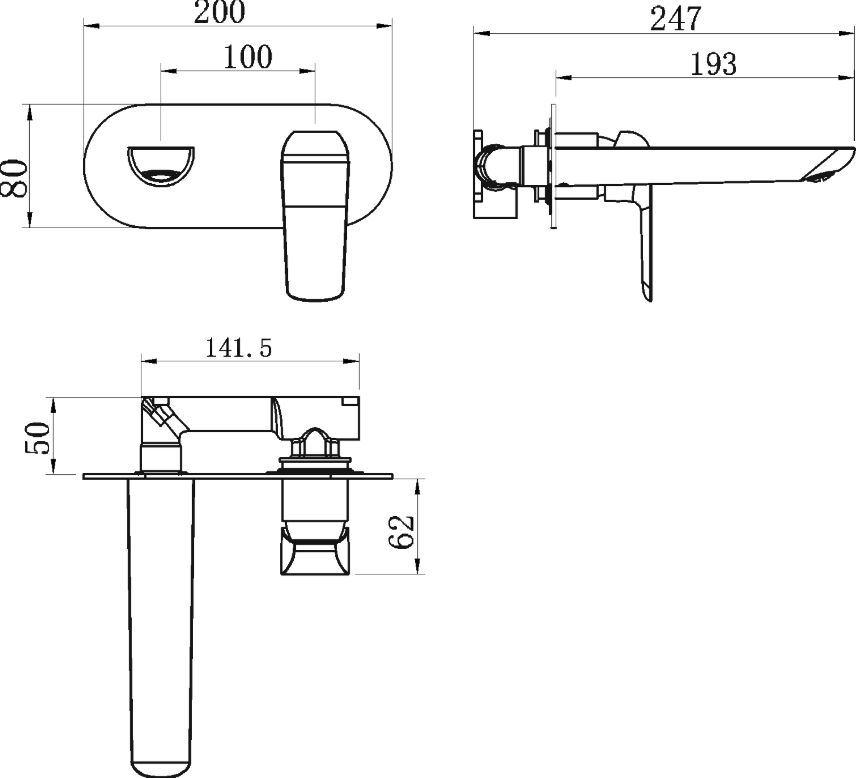 Umyvadlová nástěnná podomítková baterie s délkou výtokového ramínka 193 mm.