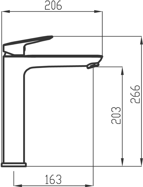 COMFORT 200 mm - umyvadlová baterie bez výpusti s celkovou výškou 266 mm a délkou výtokového ramínka 163 mm.