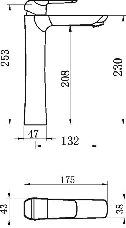 Umyvadlová baterie bez výpusti s výškou 265 mm a délkou výtokového ramínka 132 mm.