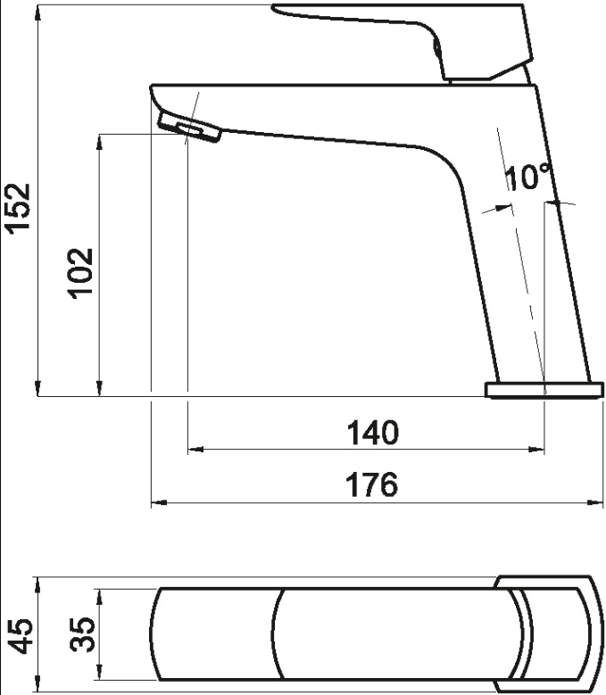 Umyvadlová baterie s výpustí click-clack pro umyvadlo s přepadem s výškou 152 mm a délkou výtokového ramínka 140 mm.