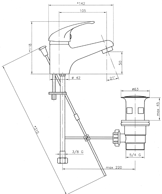 Umyvadlová baterie s 5/4“ kovovým uzávěrem výpusti.