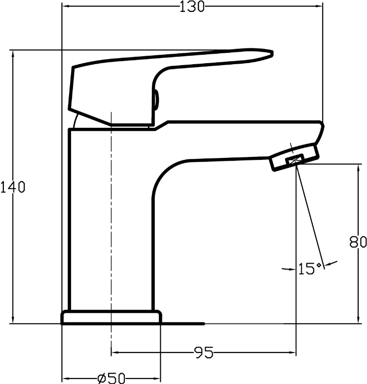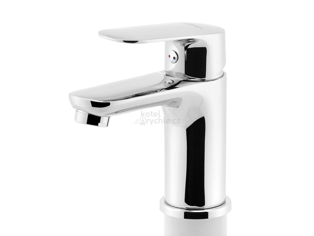 Umyvadlová baterie s výpusti click-clack s výškou 140 mm a délkou výtokového ramínka 95 mm.